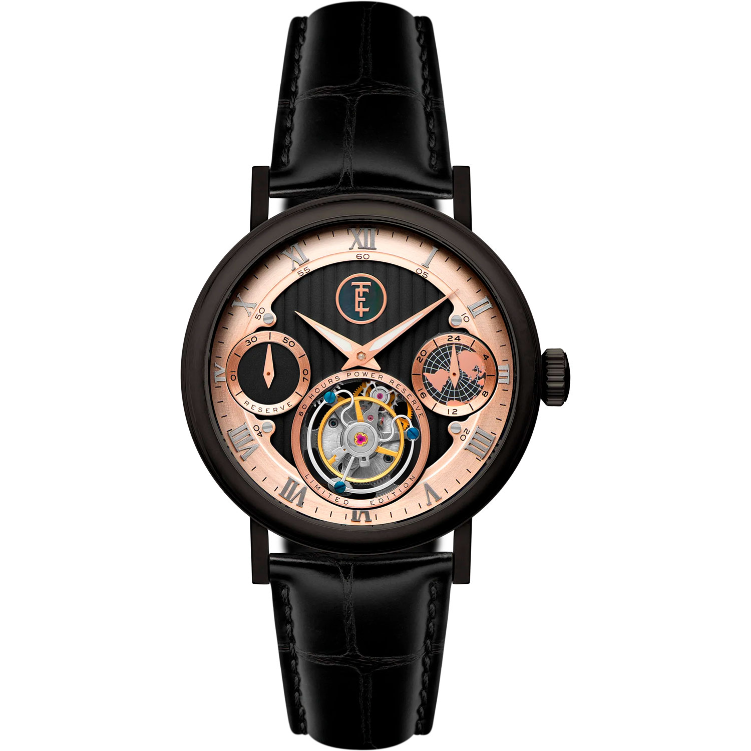 Thomas Earnshaw ES-8262-0E сочетает турбийонную конструкцию, открытый участок циферблата и классическую компоновку корпуса с кожаным ремешком. Модель входит в ограниченную серию Celestial Halley и рассчитана на коллекционеров механических часов.