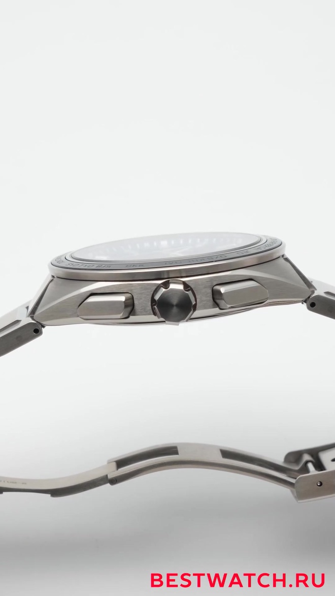 Размеры: диаметр 42.7 мм, высота часов 48.5 мм, толщина 11.4 мм, вес 105 гр. Круглый корпус выполнен из гипоаллергенного титана. Титановый браслет с защитой от царапин Comfotex Ti, раскладывающаяся застежка.