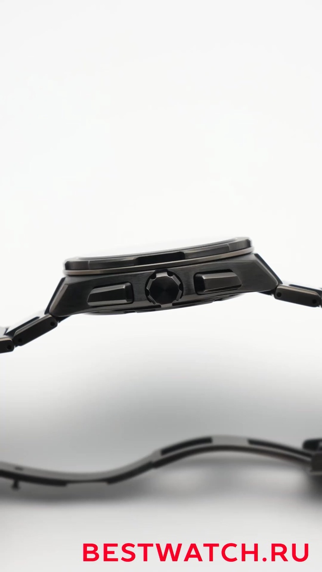 Корпус диаметром 42 мм выполнен из титана с твёрдым покрытием и оснащён устойчивым к царапинам сапфировым стеклом с антибликовым покрытием. Чёрный титановый браслет с раскладывающейся застёжкой подчёркивает премиальный характер модели, а стрелки и метки с покрытием LumiBrite обеспечивают удобное чтение показаний даже в темноте.